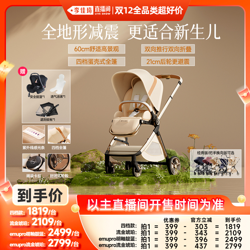 【李佳琦双12全品类超好价】逸乐途emu双向婴儿车可坐可躺高景观