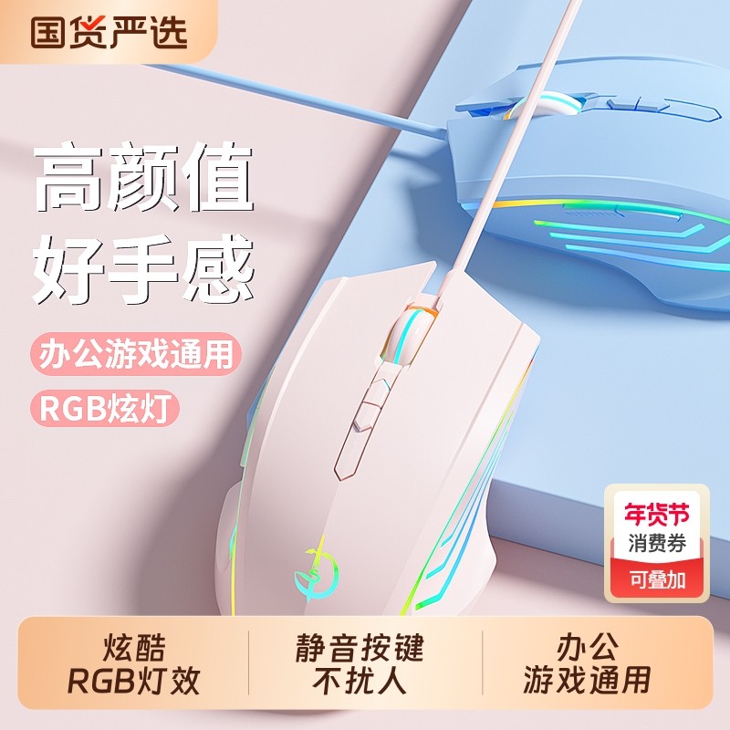 鼠标有线USB办公游戏专用机械电竞lol家用商务笔记本静音无声电脑