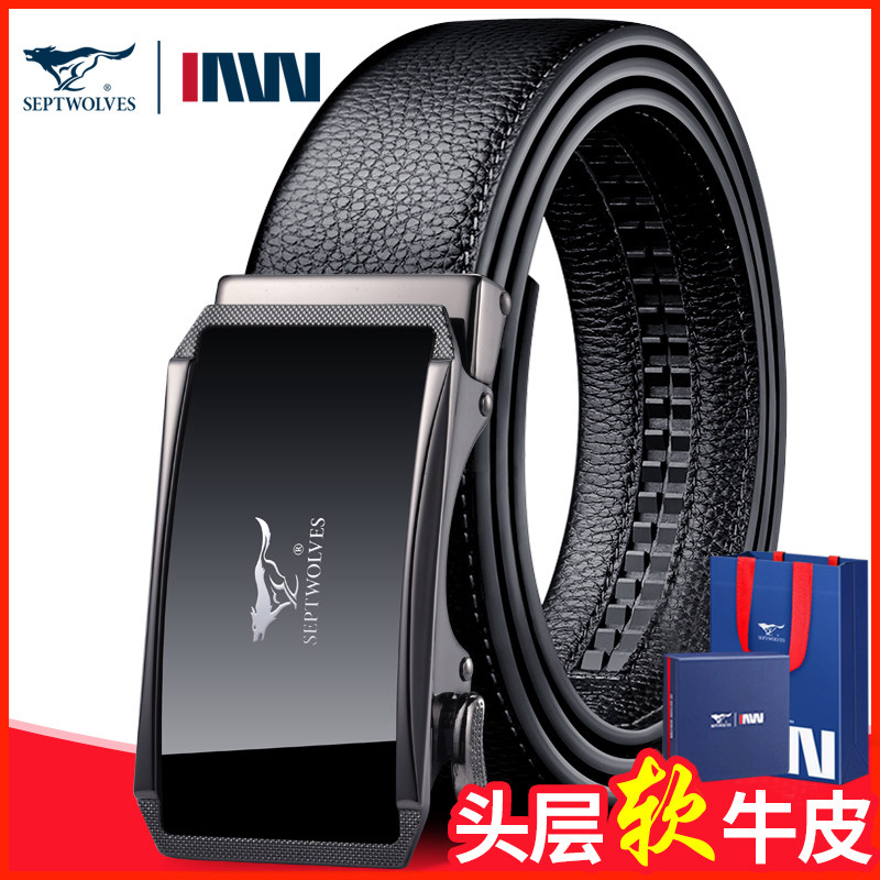 七匹狼皮带男士真皮正品纯牛皮自动扣青年腰带男潮ins年轻人裤带