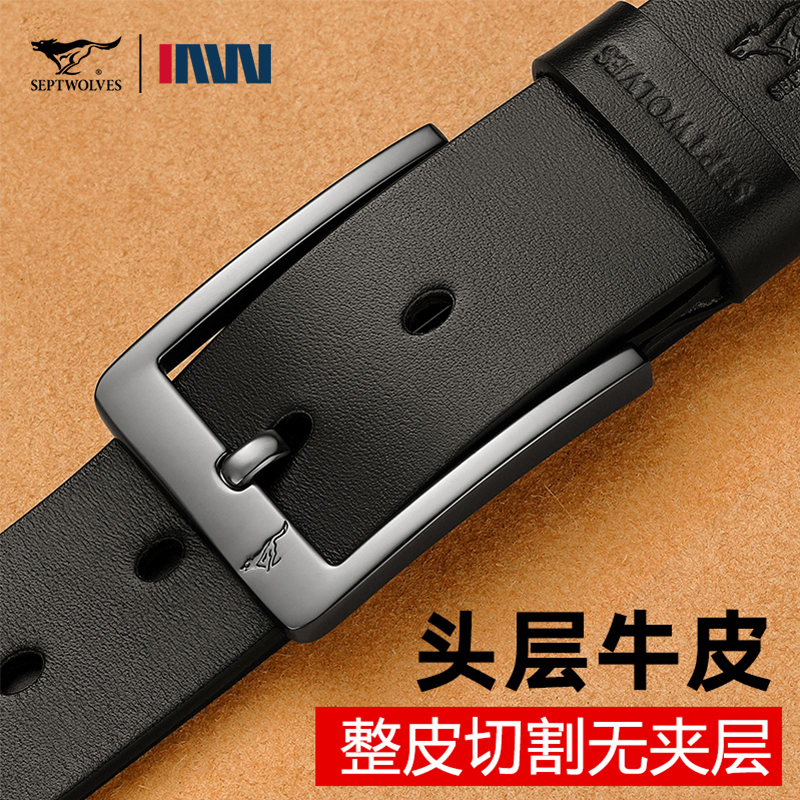 七匹狼皮带男真皮正品牛皮男士腰带青年百搭结实耐用针扣裤带男款