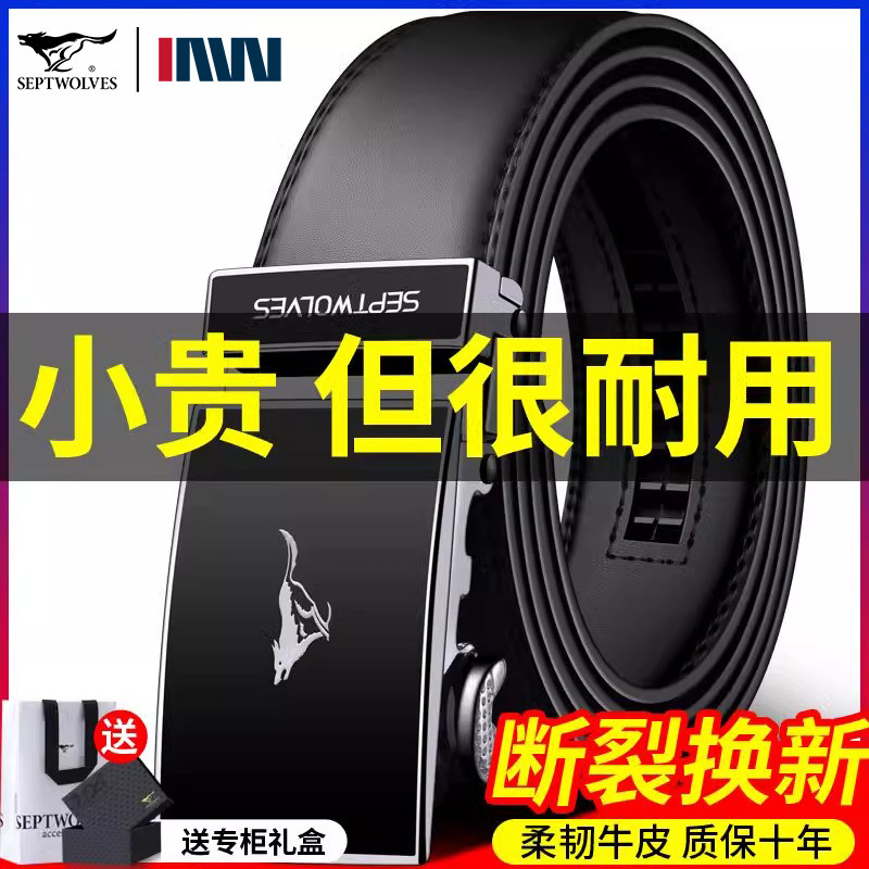 七匹狼皮带男士真皮正品自动扣牛皮腰带中青年商务裤带潮流2025款