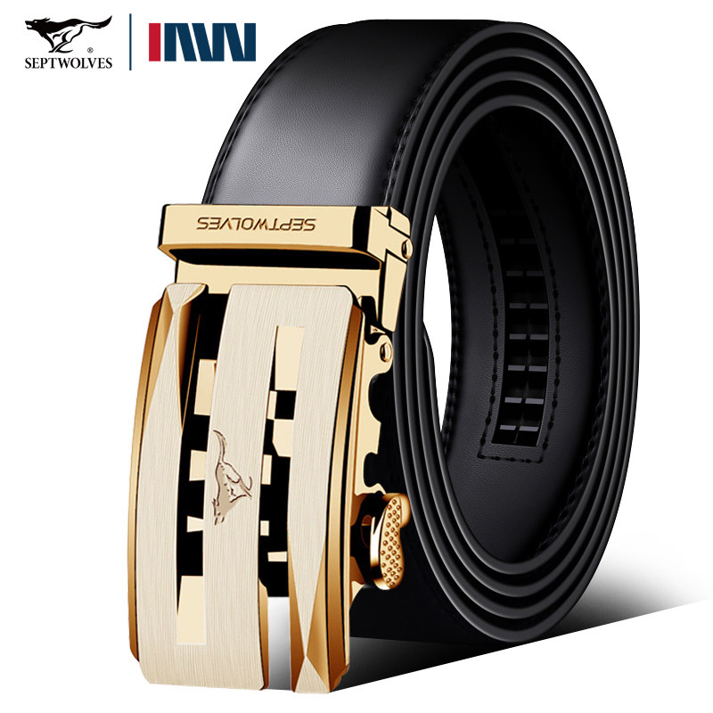 七匹狼皮带男士真皮自动扣腰带品牌金色扣卡槽青年人男款裤带软皮
