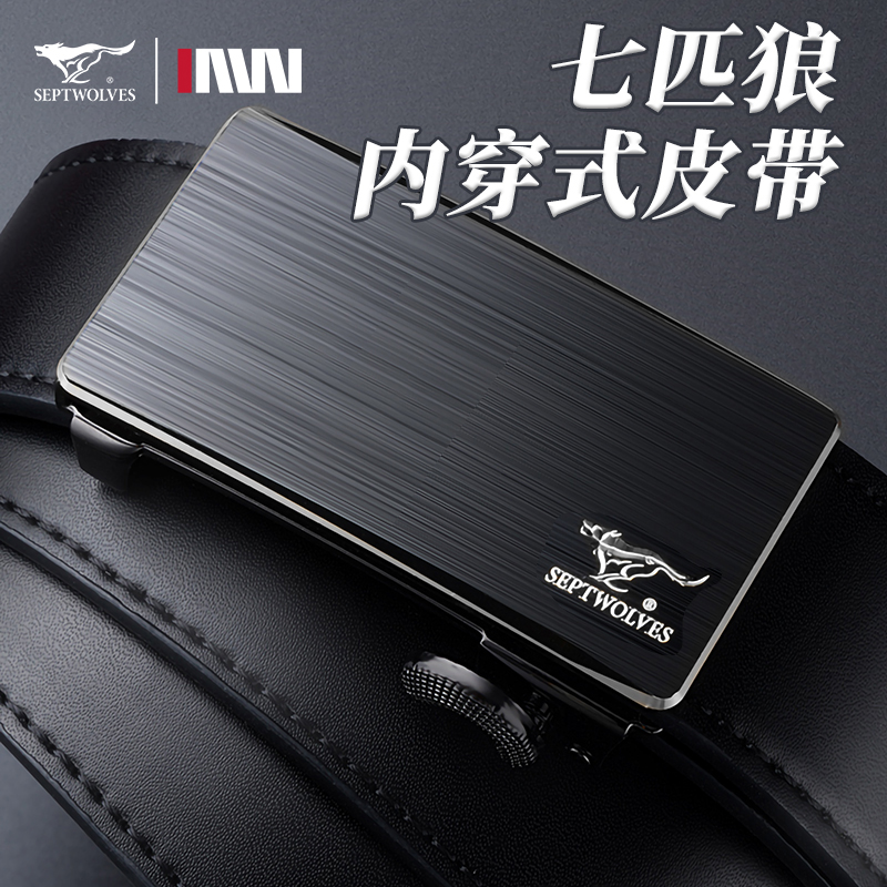 七匹狼皮带内扣纯男士真皮自动扣休闲内穿式裤带男款牛皮青年腰带