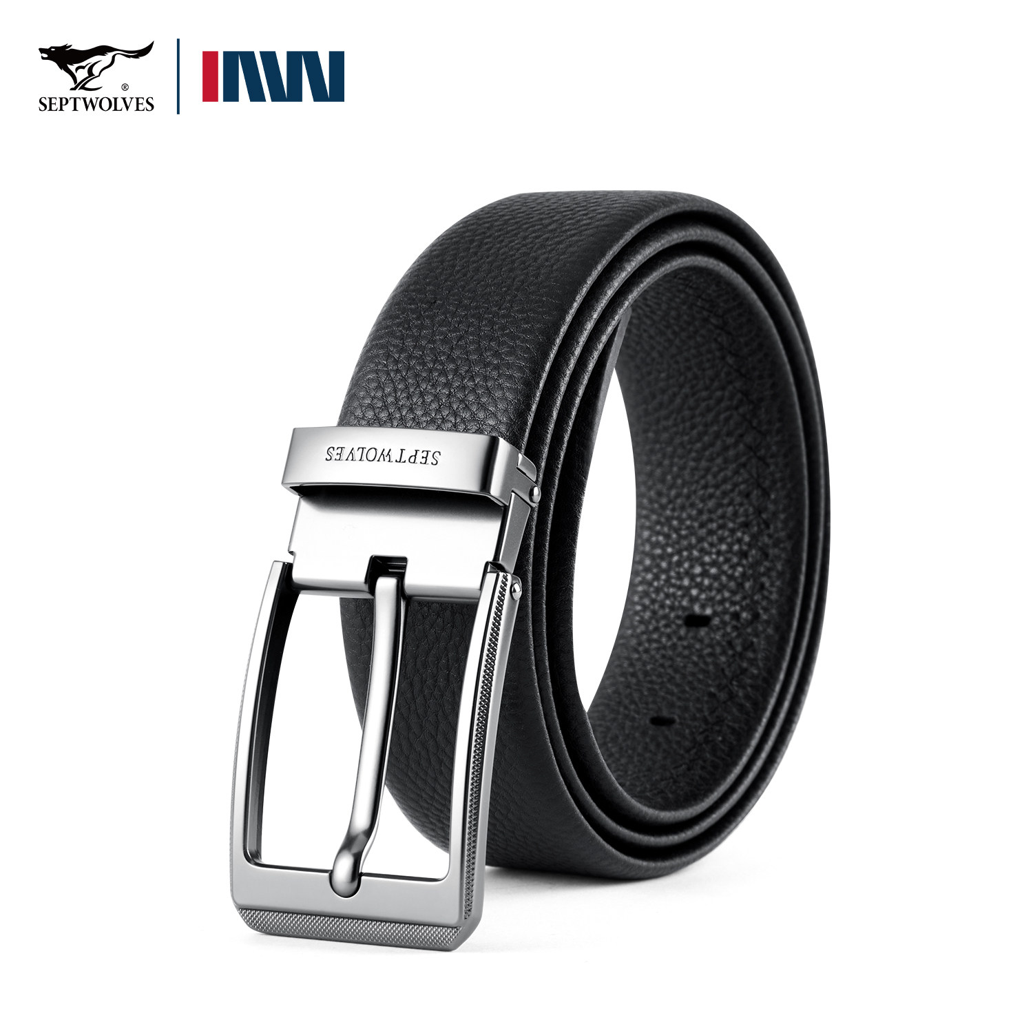 七匹狼真皮腰带 纯牛皮针扣 青年打眼裤带扣洞皮带男士配牛仔裤潮