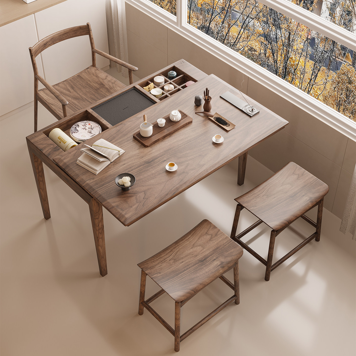 新中式阳台茶桌可推拉干湿一体泡茶桌椅组合北美黑胡桃木小型茶台