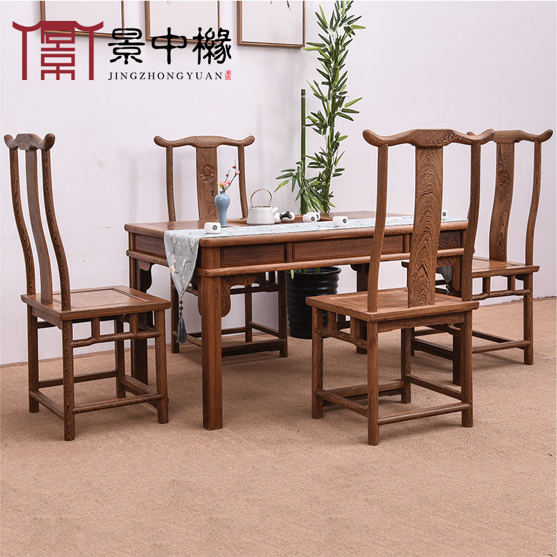 办公室茶台老榆木白茬坯新中式现代简约禅意原木家用泡茶桌椅组合
