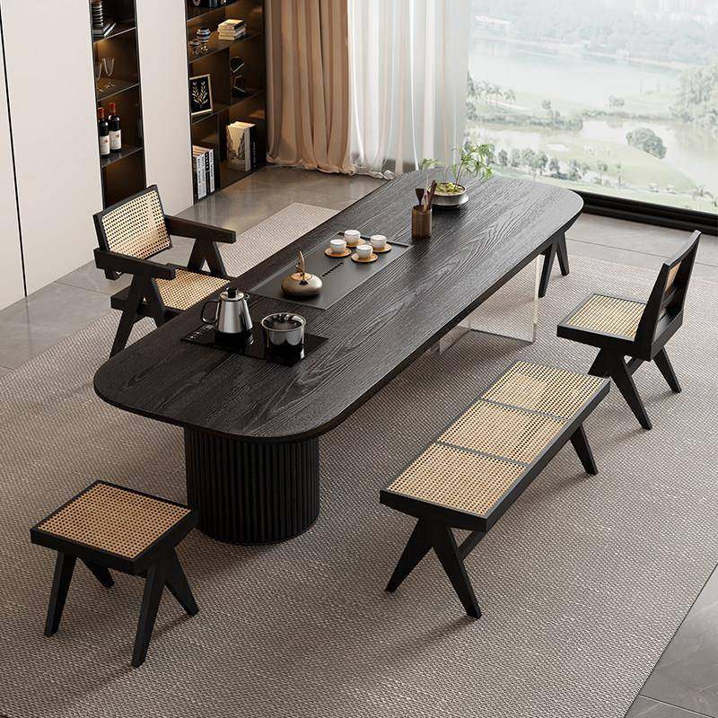 无界新中式极简白蜡木黑胡桃木意式轻奢办公室泡茶桌椅组合茶台几