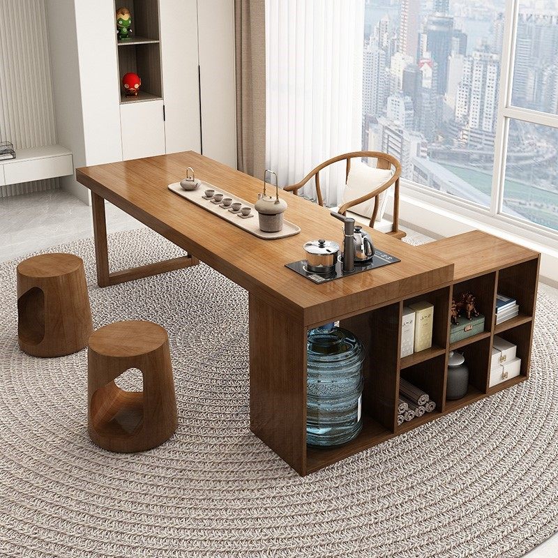 新款实木转角泡茶桌椅组合现代简约家用阳台书桌茶桌两用带储物格