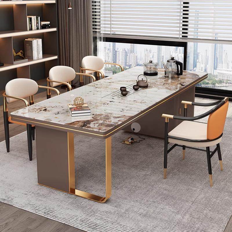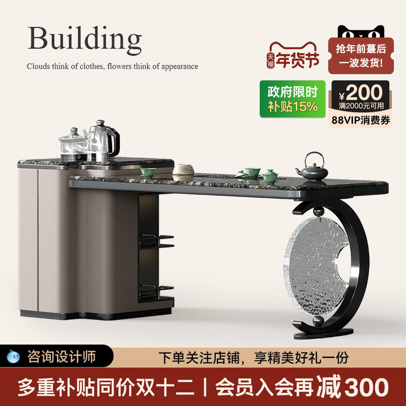 轻奢现代岩板茶桌高级感办公室茶几茶道套装茶台一体泡茶桌椅组合