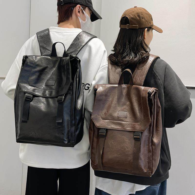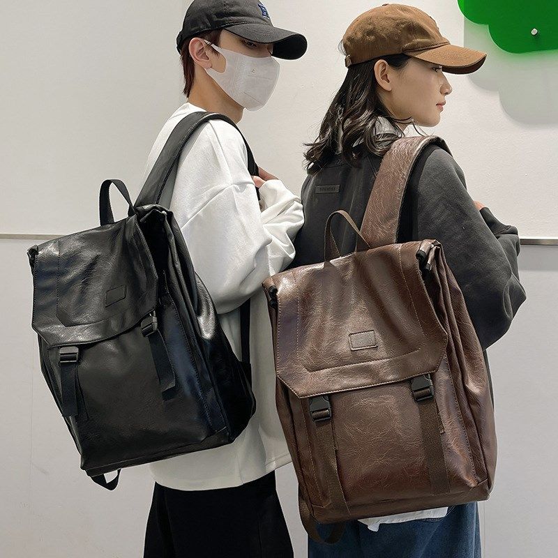 2025新款双肩包男PU软皮包韩版背包潮流青年电脑包女大学生书包