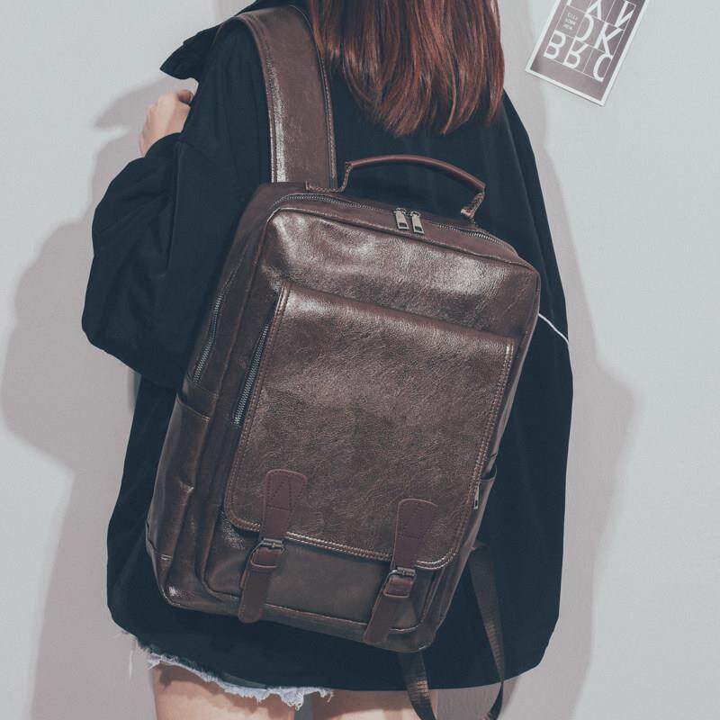 复古休闲双肩包男士背包电脑包学院风韩版学生书包女PU皮旅行潮包
