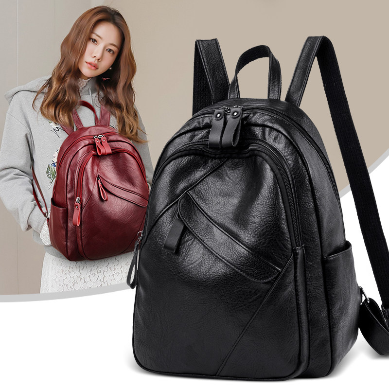 - 真皮双肩包女韩版