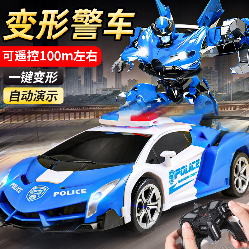 变形遥控车玩具金刚机器人一键变形警车儿童漂移变形汽车礼物男孩