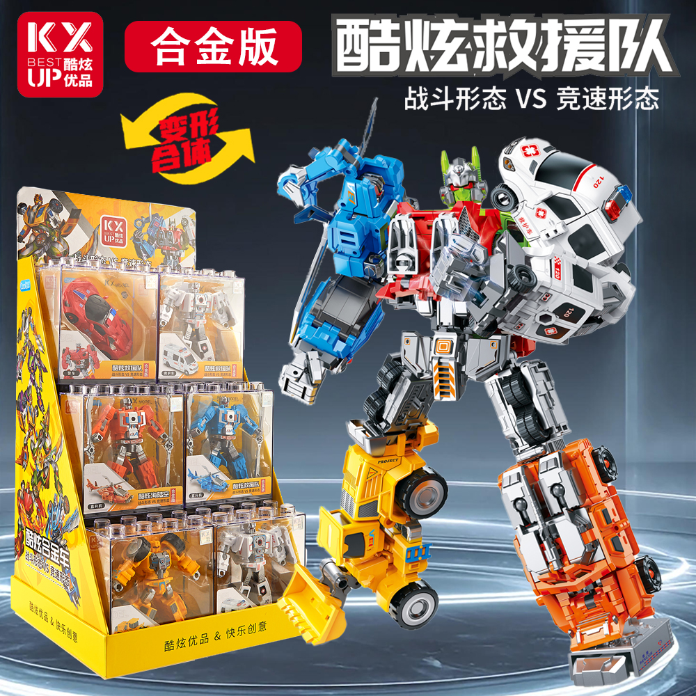 酷炫优品救援队变形机器人直升机警车救护金刚拼装合体儿童男玩具
