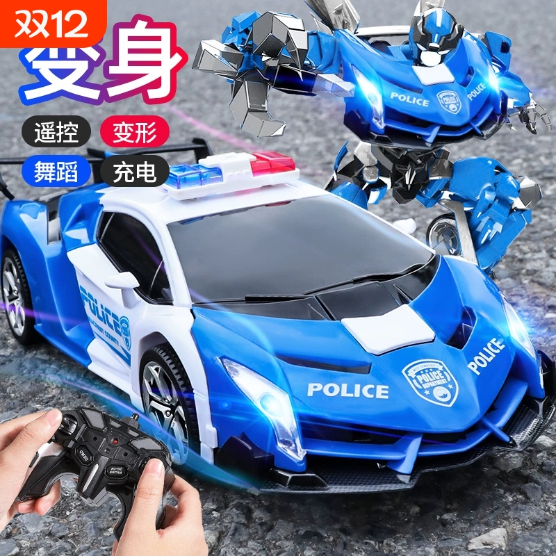 变形遥控汽车金刚机器人警车充电动跑车儿童玩具赛车男孩生日礼物