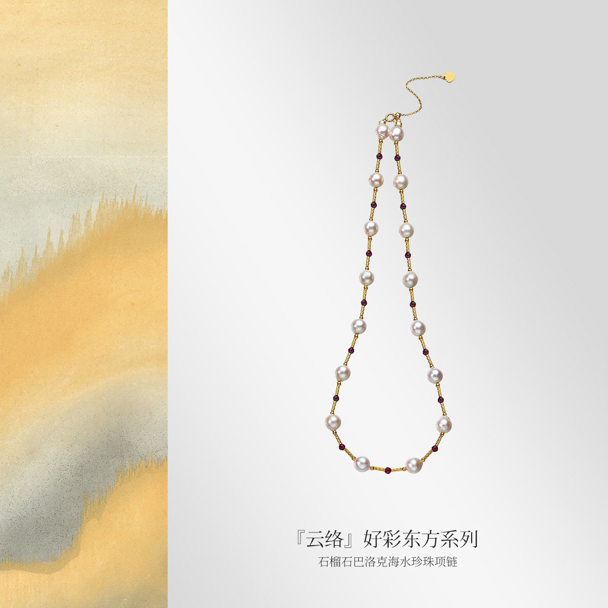 Meluxe美奈【云络】石榴石akoya海水珍珠项链S925银海水珍珠串珠