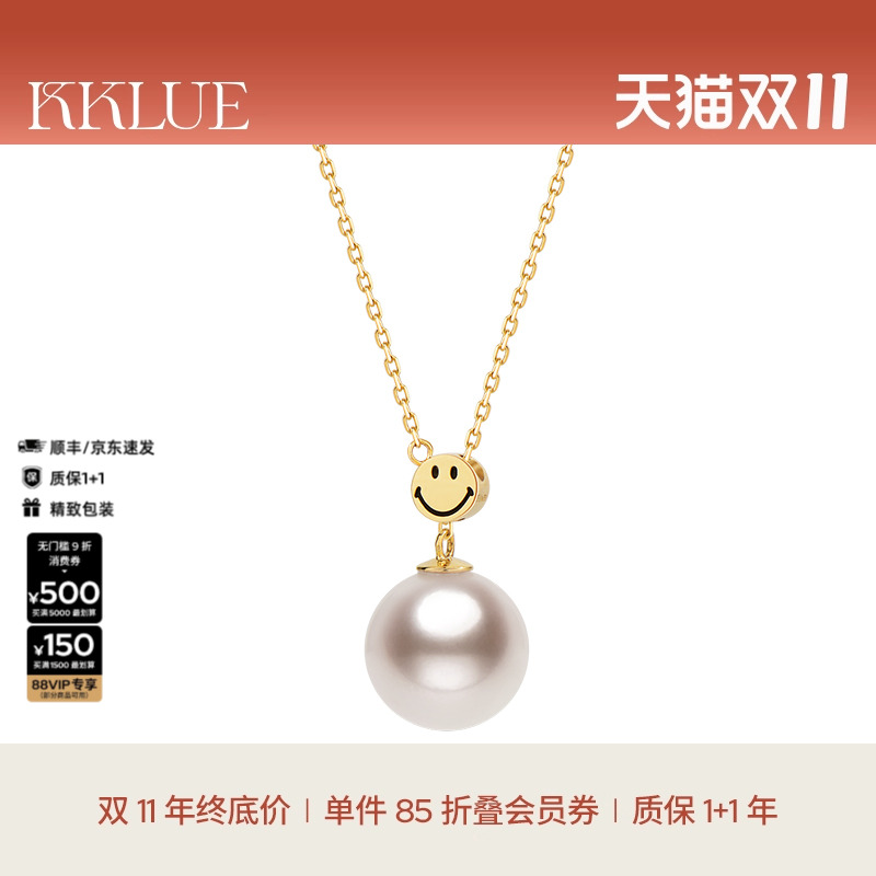 KKLUE笑脸联名戴妃Akoya海水珍珠项链Y字链女单颗吊坠18k金毛衣链