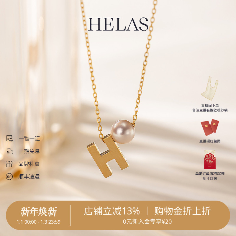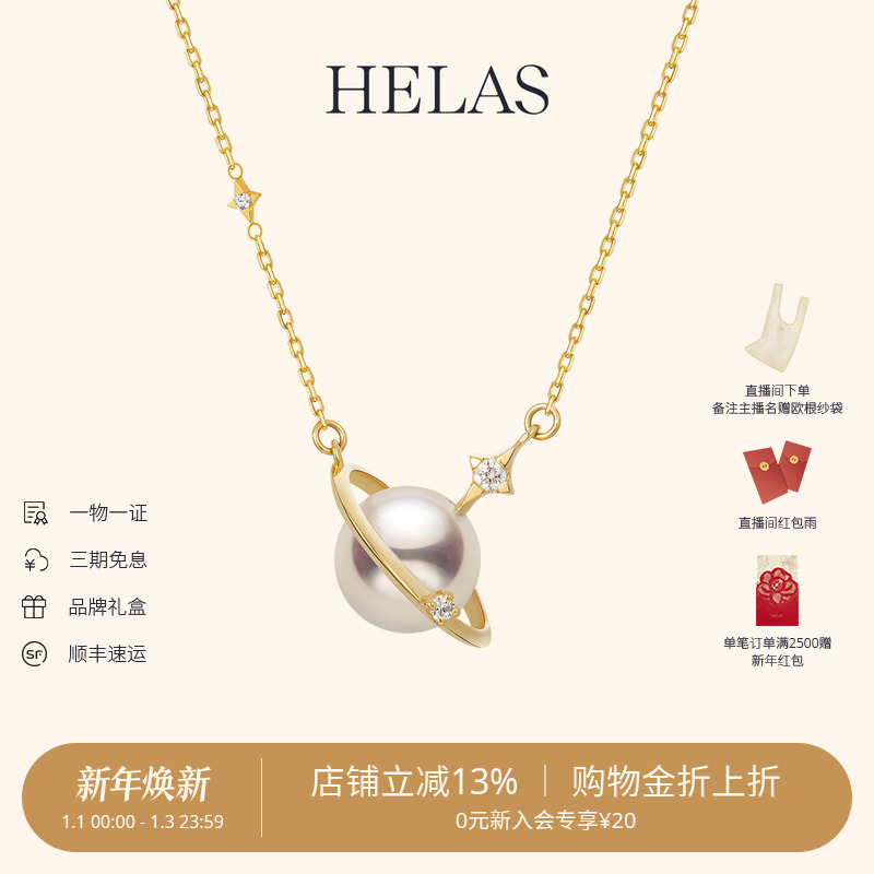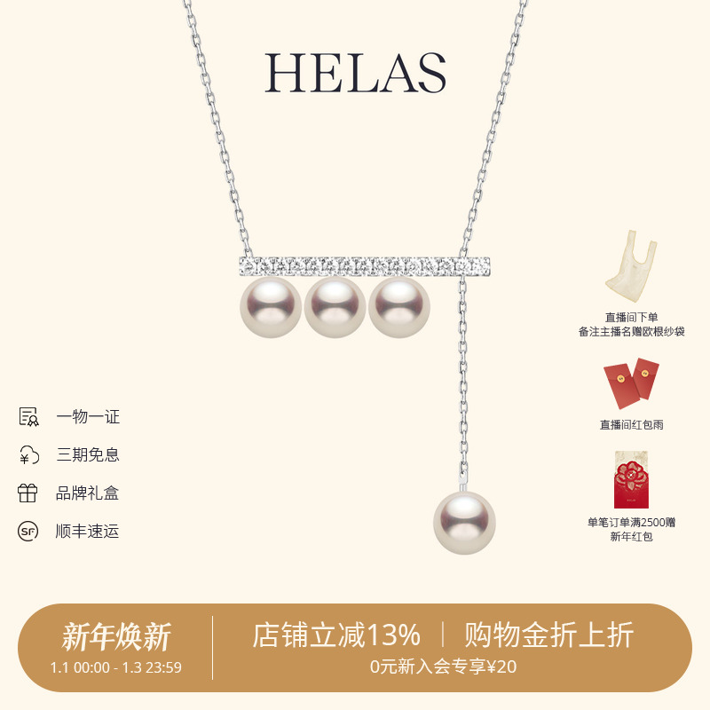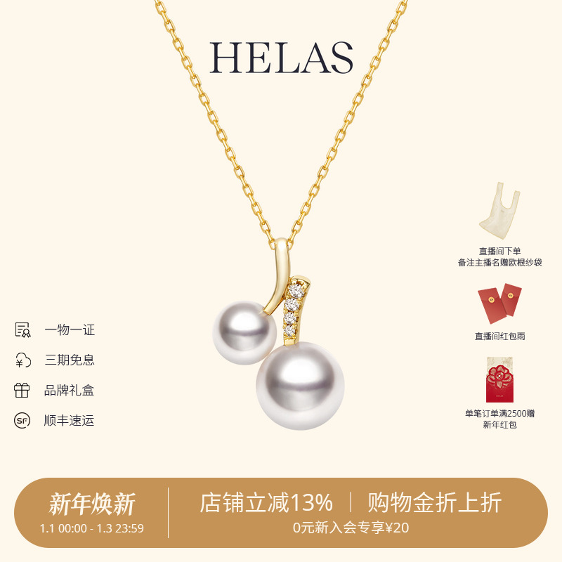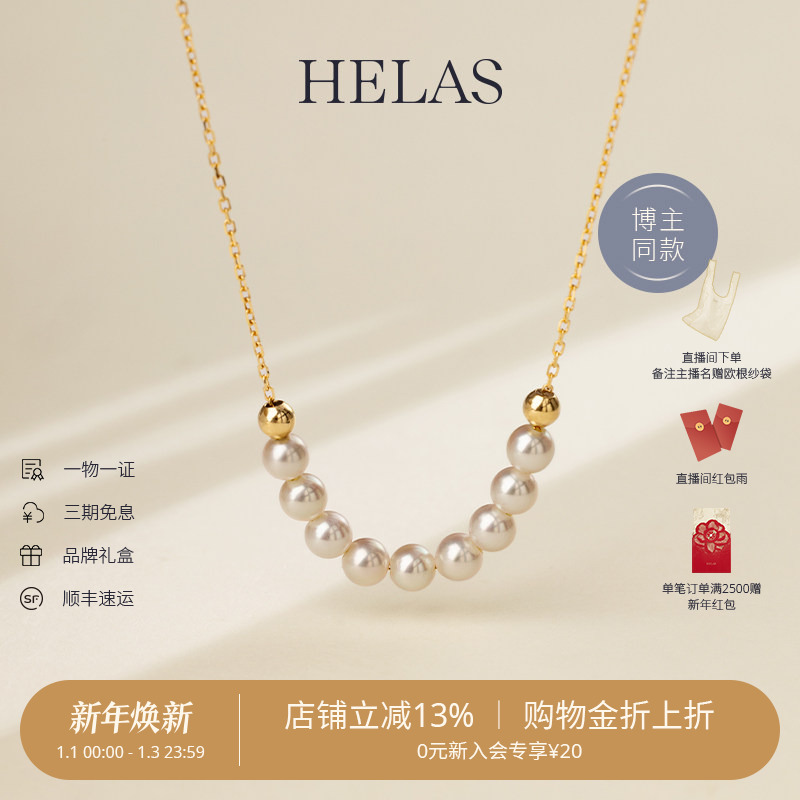 HELAS赫拉Akoya海水珍珠项链女路路通18K金吊坠颈链珍珠女款爆款