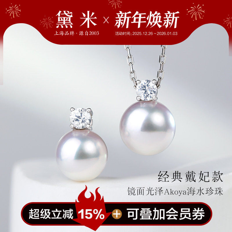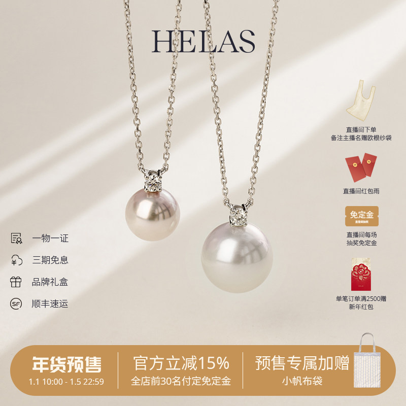 HELAS赫拉戴妃Akoya海水珍珠项链项坠女澳白珍珠吊坠钻石王妃正品