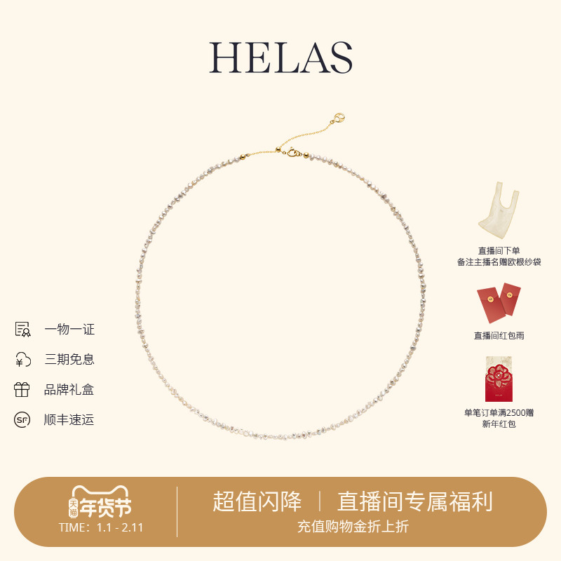 HELAS赫拉Akoya海水珍珠项链女18K金大溪地keshi珍珠碎银子颈链
