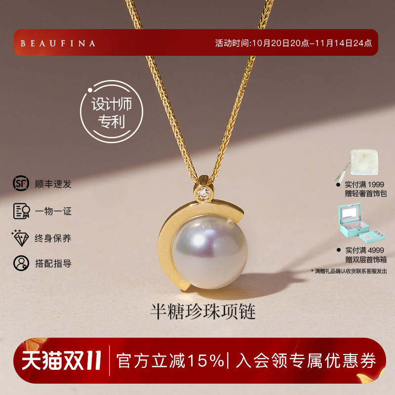 【双11现货】BEAUFINA百分娜守护系列Akoya海水珍珠项链18K金吊坠