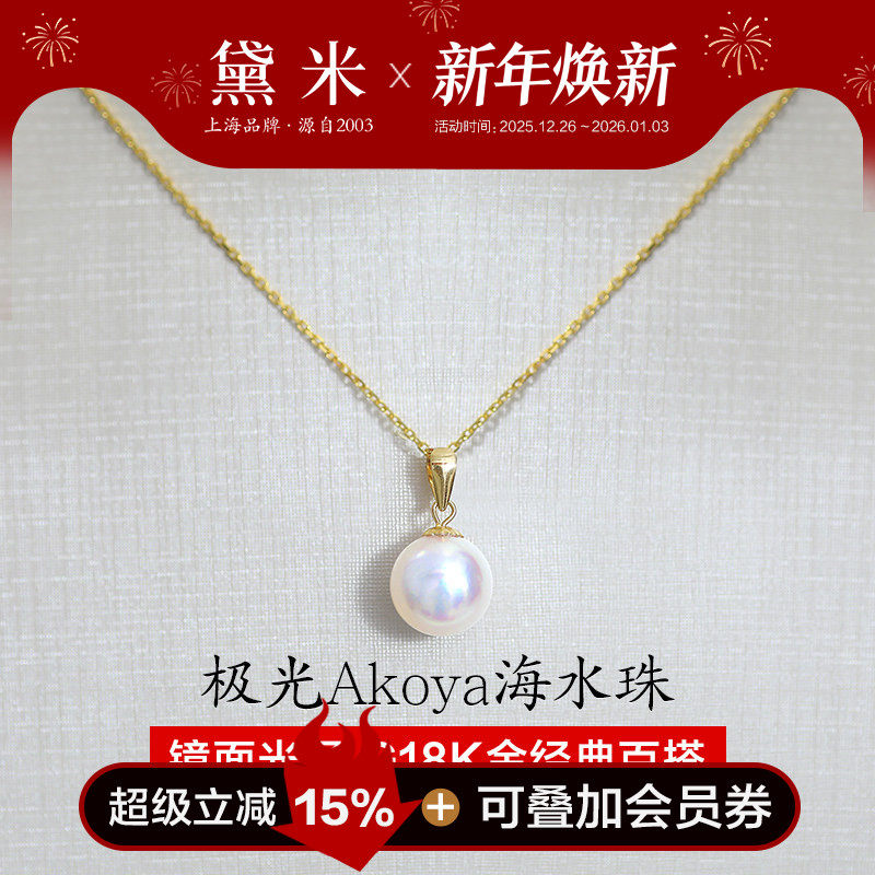 黛米耀丽 18K金正圆白色akoya海水珍珠项链单颗颈链吊坠-配证书