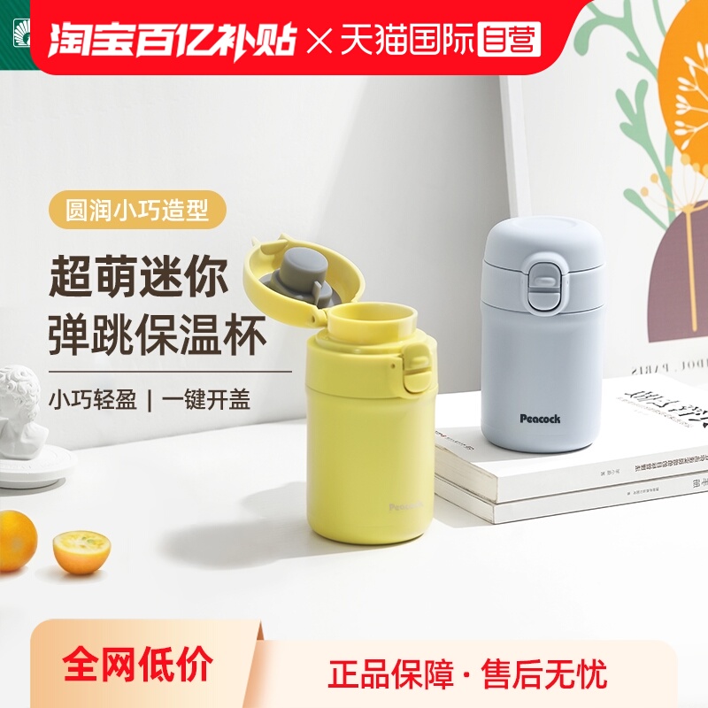 【自营】【百亿补贴】日本孔雀马卡龙弹盖保温水杯女可爱迷咖啡杯