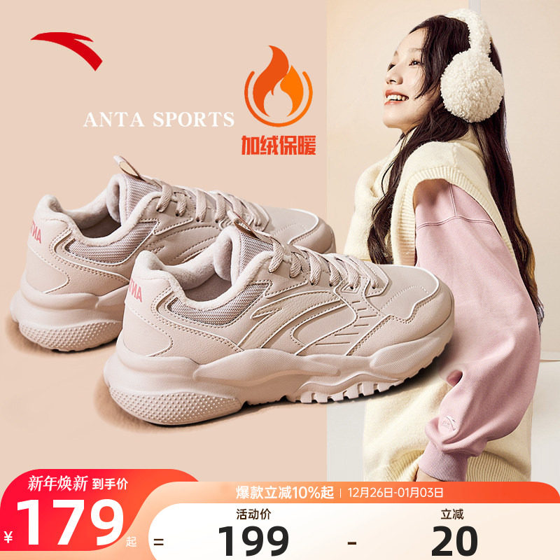 安踏女鞋运动鞋2025冬季新款休闲鞋子官方旗舰店皮面轻便跑步鞋女