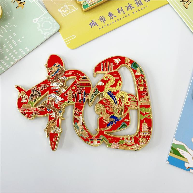 大中国汉字红色喜庆过年冰箱贴旅游伴手小礼物金属冰箱磁吸冰箱贴