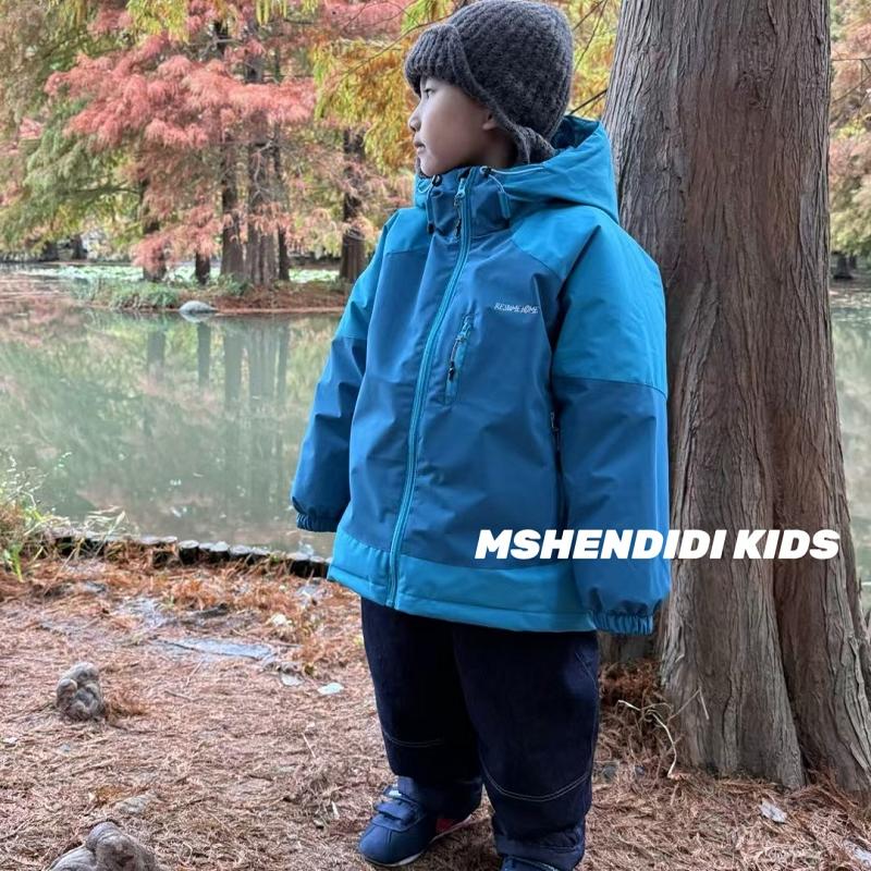 过年旅游穿2025冬季中大童冲锋衣儿童休闲拼色三防连帽羽绒服外套