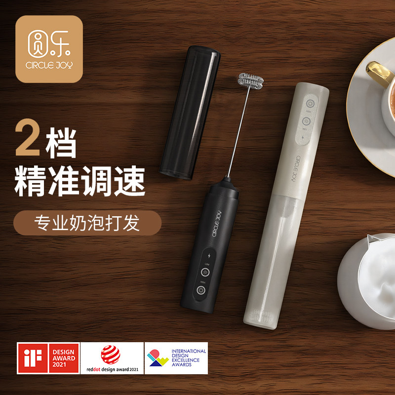 圆乐咖啡打泡器电动充电收纳牛奶搅拌器奶盖打发奶泡机手持打奶器