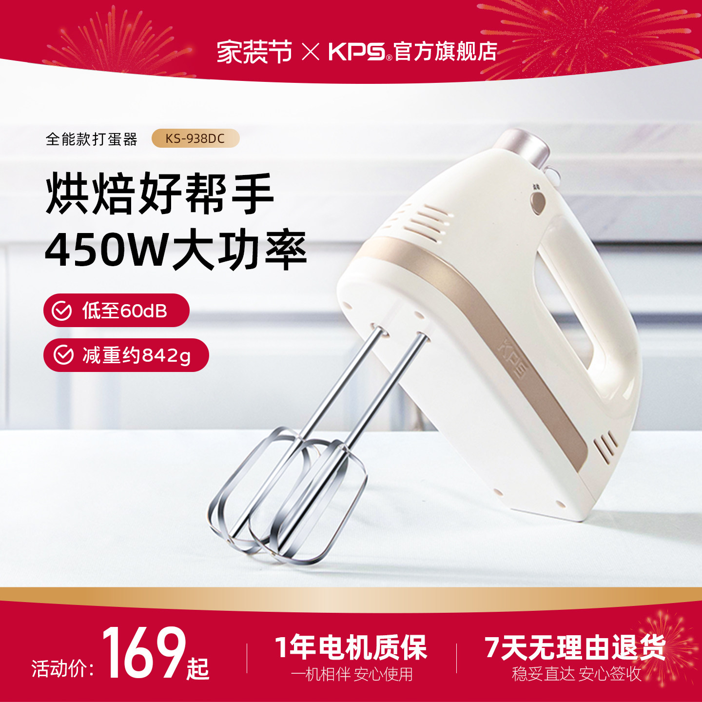 KPS祈和KS938DC新款电动打蛋器家用小型手持奶油搅拌机烘培打发器