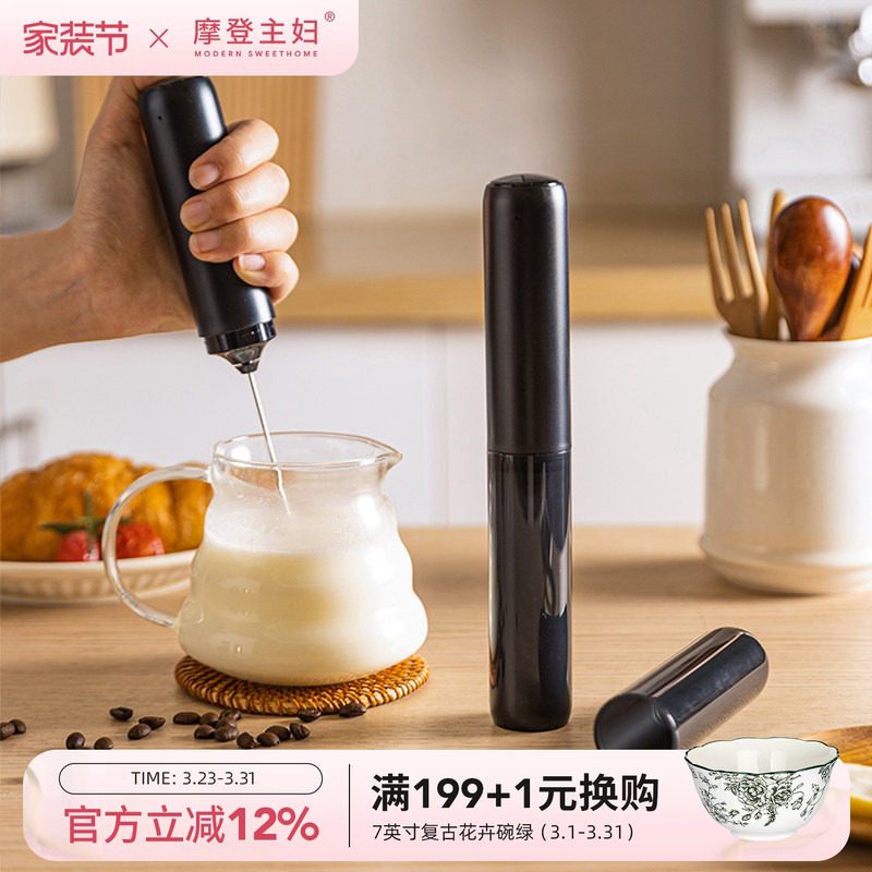 摩登主妇打泡器奶泡器咖啡起泡器牛奶搅拌器打发器电动手持奶泡机