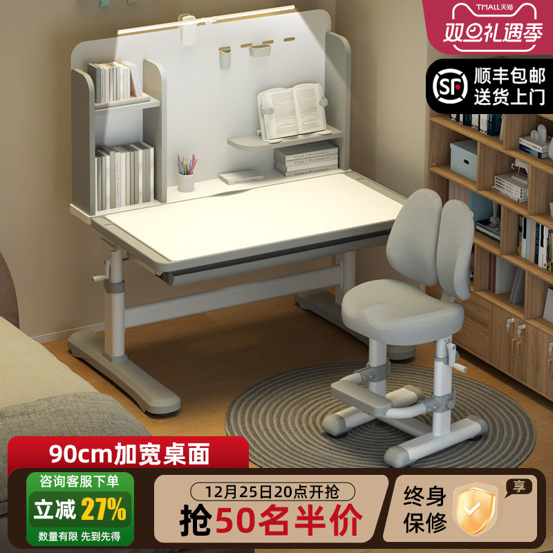 儿童学习桌小学生家用实木书桌可升降桌椅套装2025新款护眼写字桌