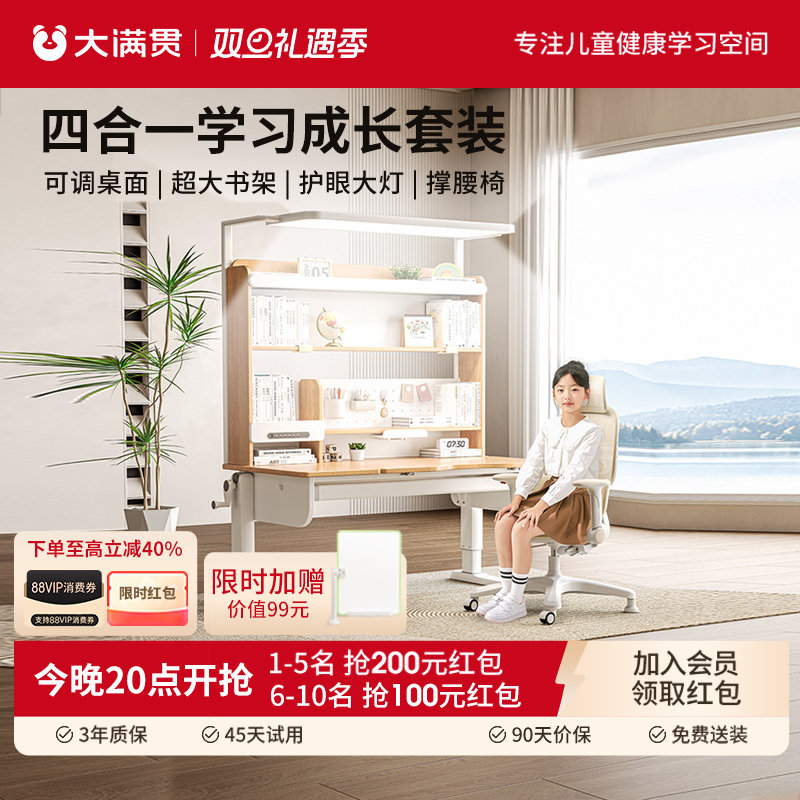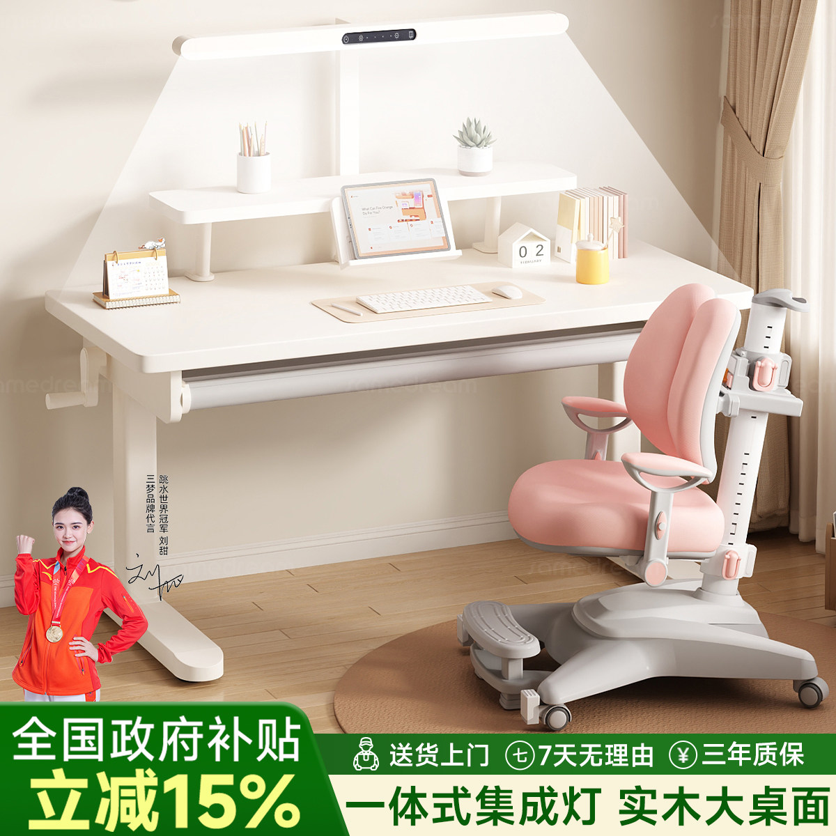 大满贯儿童学习桌护眼灯一体小学生实木书桌升降桌椅2025新款杉语