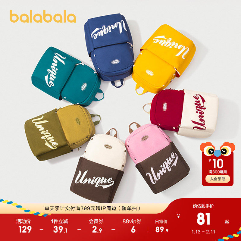 巴拉巴拉儿童书包休闲大容量收纳双肩包撞色轻便式野外郊游大包潮