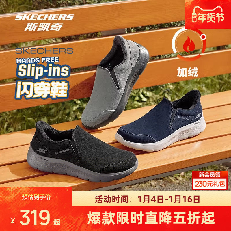 斯凯奇闪穿鞋丨秋冬新款女子加绒保暖一脚蹬健步鞋舒适妈妈运动鞋