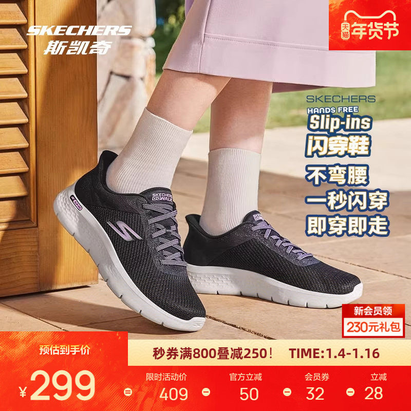 斯凯奇2026春夏新款女士健步鞋休闲鞋轻便一脚蹬健身鞋减震运动鞋