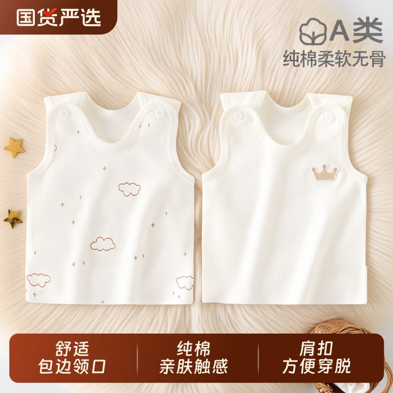 婴儿吊带背心A类纯棉春秋款打底衣新生儿衣服宝宝贴身半背无袖衣