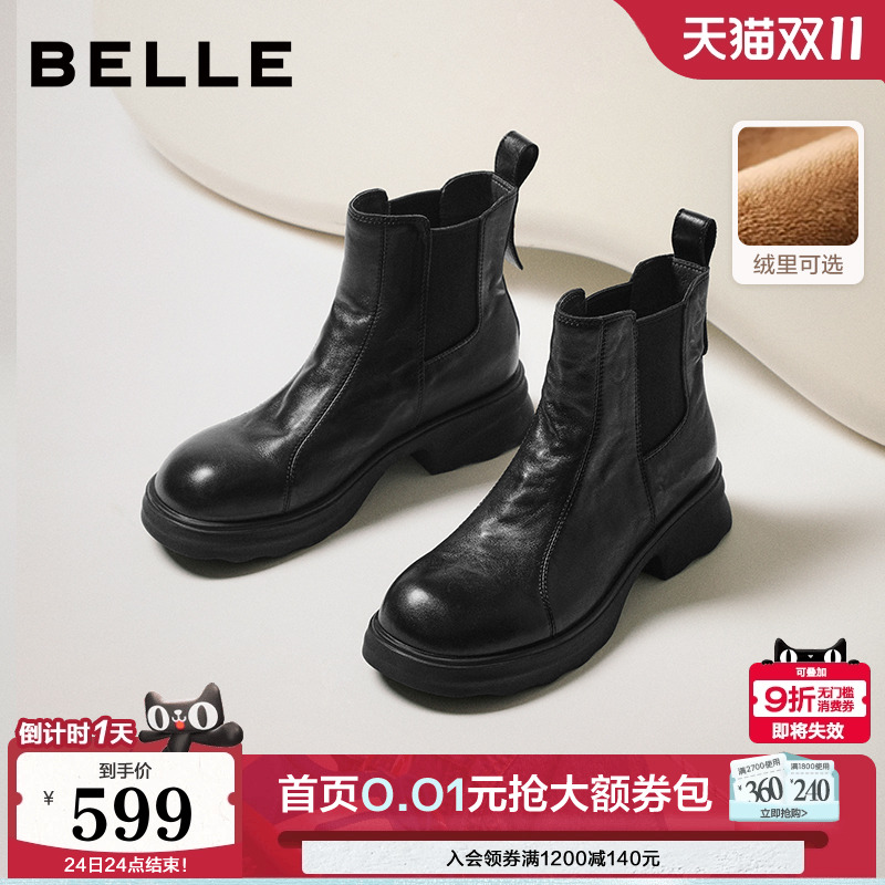 百丽女靴子真皮显瘦瘦切尔西靴冬款加绒保暖增高烟筒短靴B2888DD5