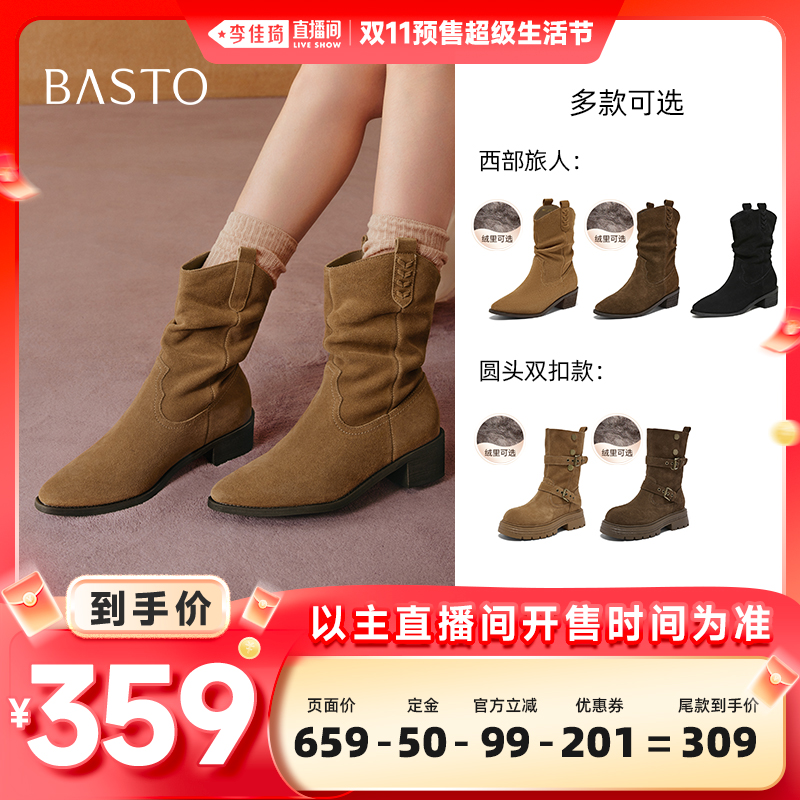【李佳琦直播间生活节付定金】百思图真皮西部靴堆堆靴厚底女短靴