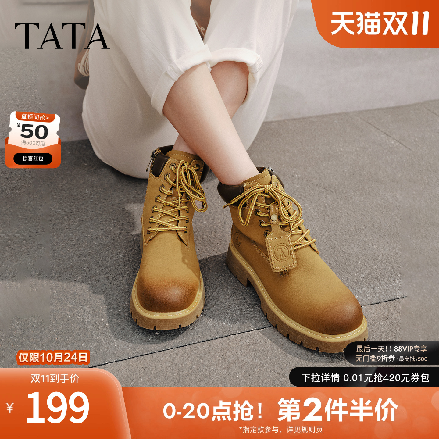 TATA他她西部靴工装靴女冬复古大黄靴真皮百搭登山短靴子CF502DD5
