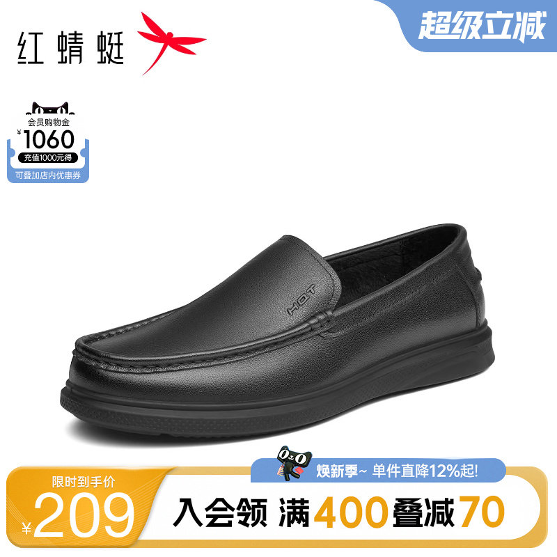红蜻蜓正装乐福鞋男春季新款男鞋男士真皮一脚蹬软底男款商务皮鞋