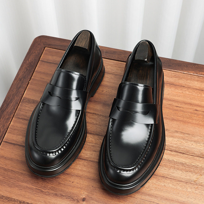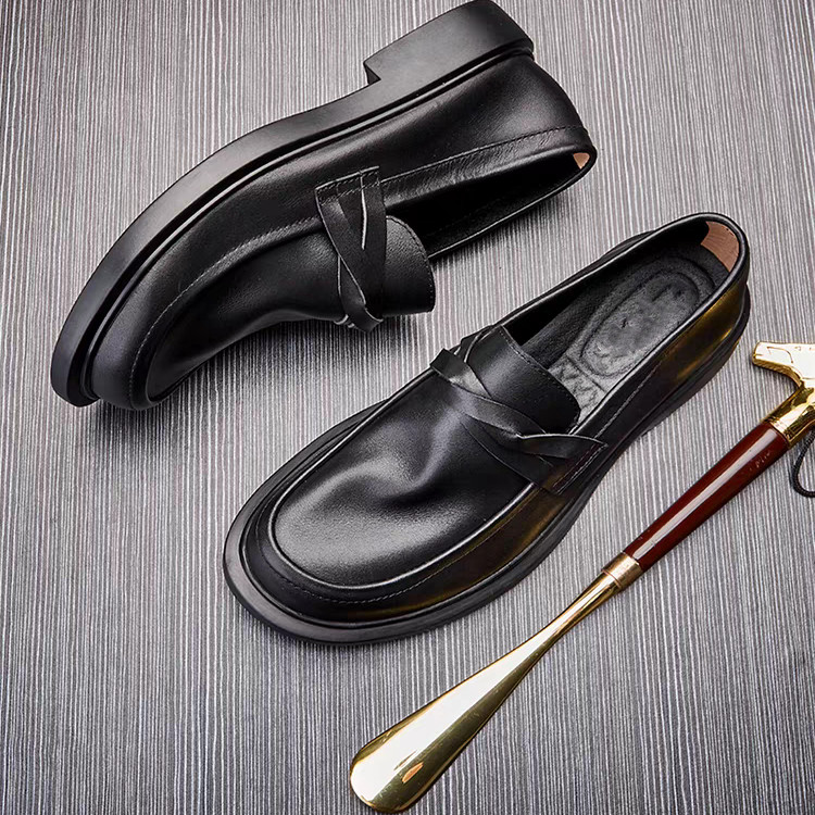 2025年秋季新款英伦风厚底乐福鞋男真皮一脚蹬懒人豆豆鞋休闲皮鞋