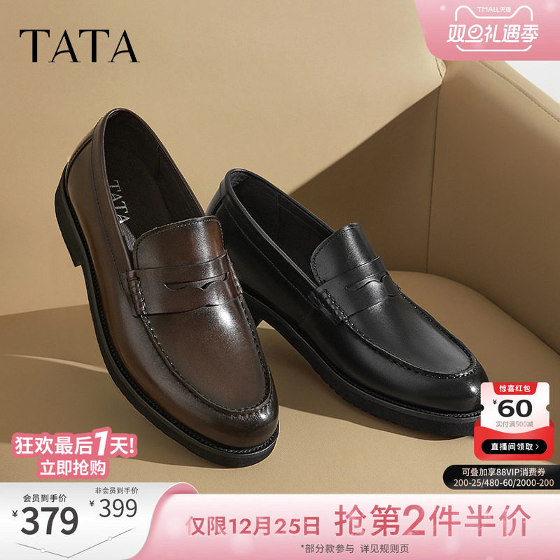 TATA他她商务一脚蹬皮鞋男士英伦真皮乐福鞋男鞋春季新款NFT01AM5