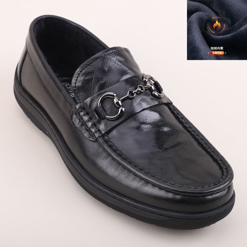 冬季加绒保暖乐福鞋男真皮一脚蹬商务皮鞋轻便软底舒适时尚豆豆鞋