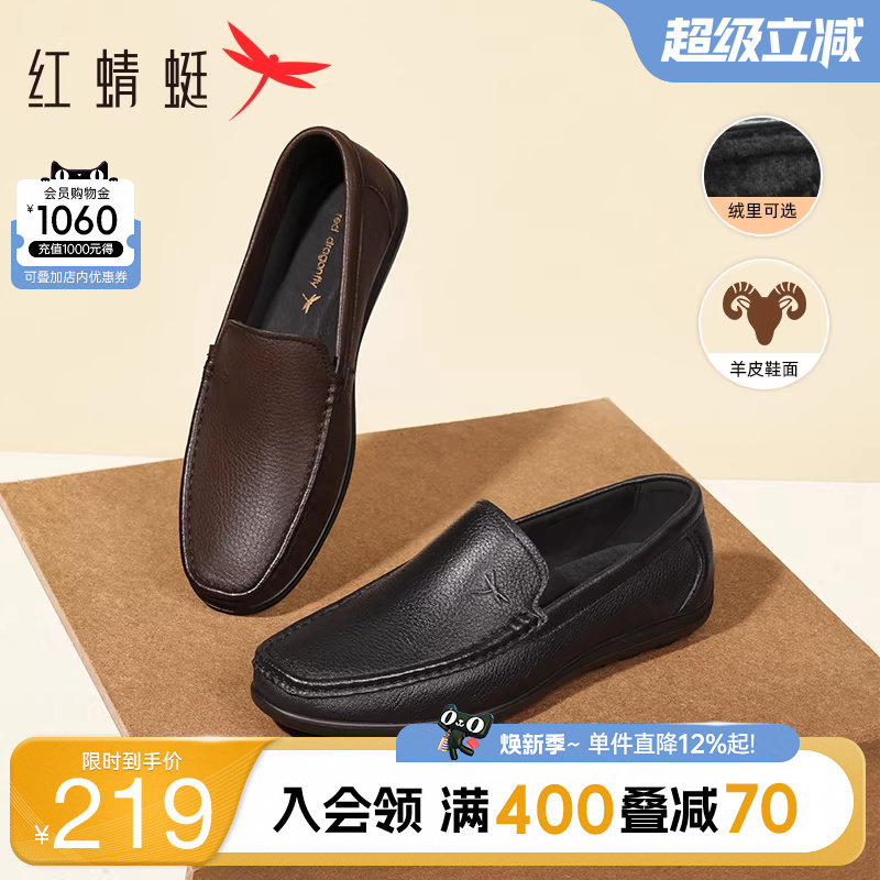 红蜻蜓男鞋春季新款软底豆豆鞋男士真皮一脚蹬休闲皮鞋乐福鞋男款