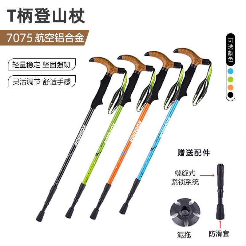 登山杖超轻伸缩T弯柄手杖内锁避震伸缩拐杖专业户外爬山杆徒步杖