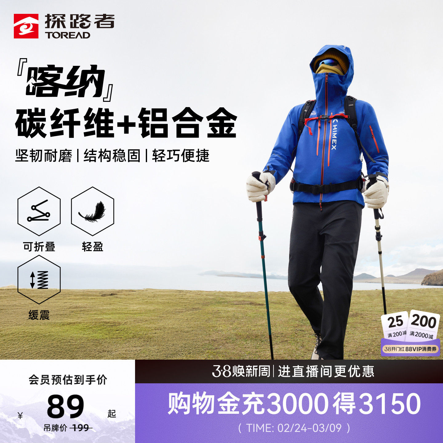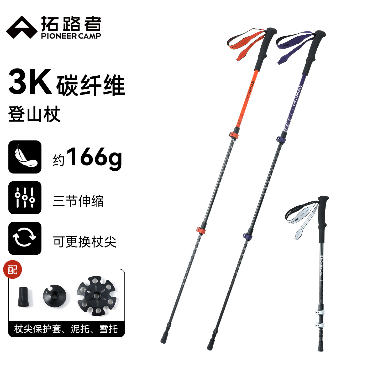拓路者登山杖碳纤维超轻伸缩拐杖新品男女款爬山户外装备徒步手杖