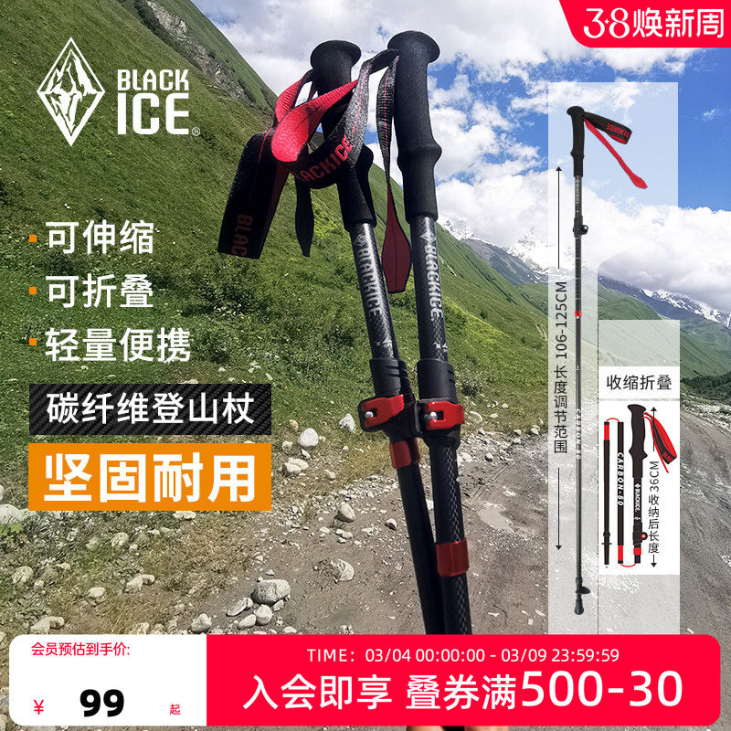 黑冰户外徒步碳纤维登山杖伸缩拐杖男女专业爬山折叠手杖1602单根
